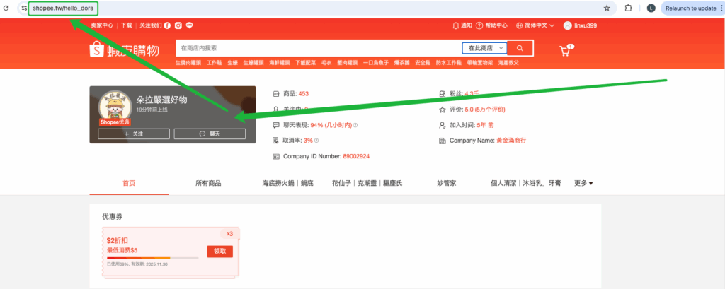 二、在Shopee网站如何复制店铺链接 或 产品链接