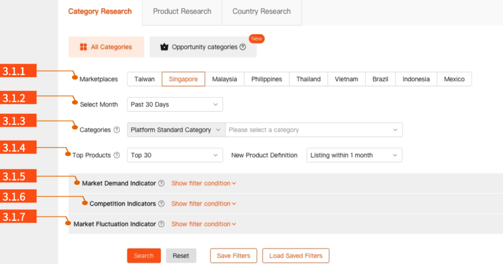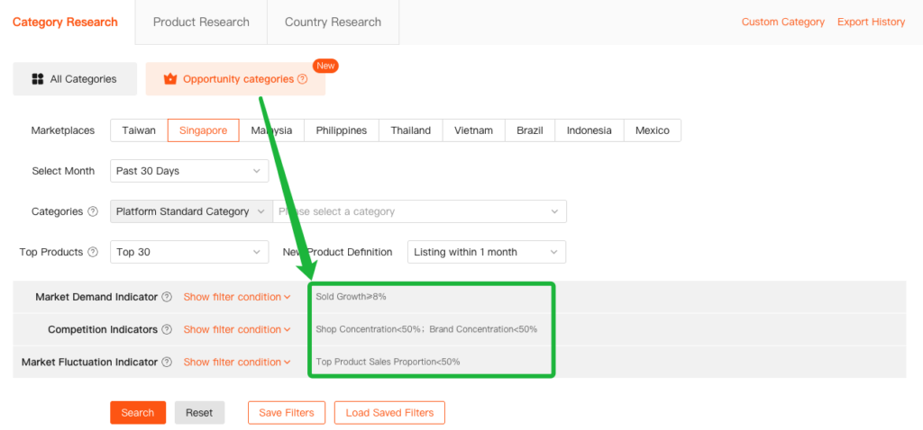 Shopdora provides pre-defined, standardized criteria for “Opportunity Categories”. Users can use these default settings as a baseline and further adjust their own filtering conditions as needed.