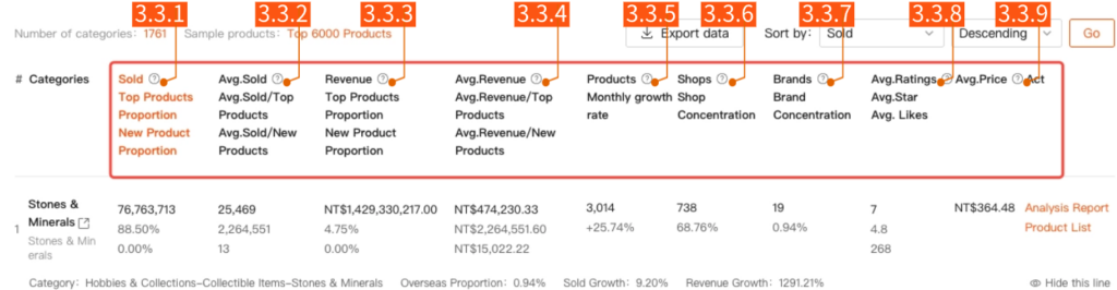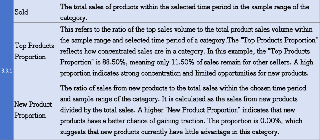 - Market Demand Indicator: Reflects buyer size and consumption trends. Look for categories with high, stable, or continuously growing demand.