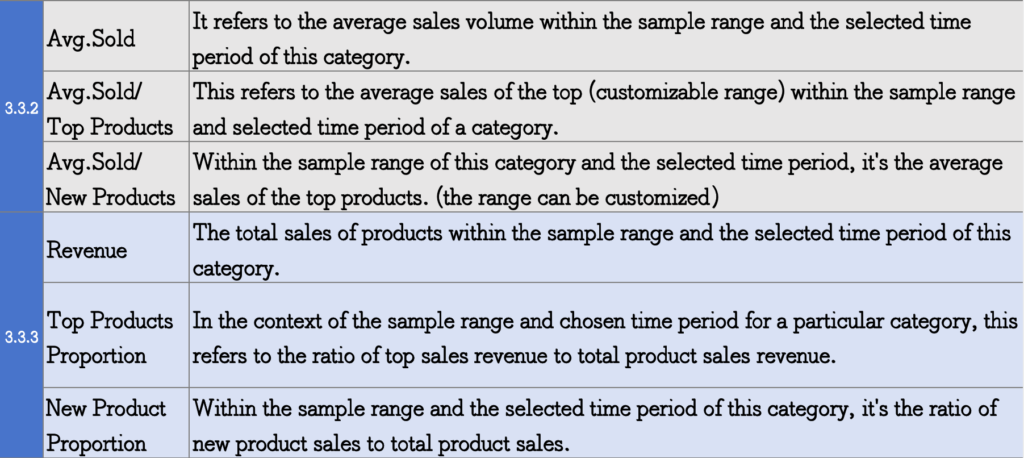 Refers to high-value, representative products ranked by sales within the selected category. By default, the top 30 products are shown, but this can be adjusted to show the top Top 50, Top 80, or Top 100.