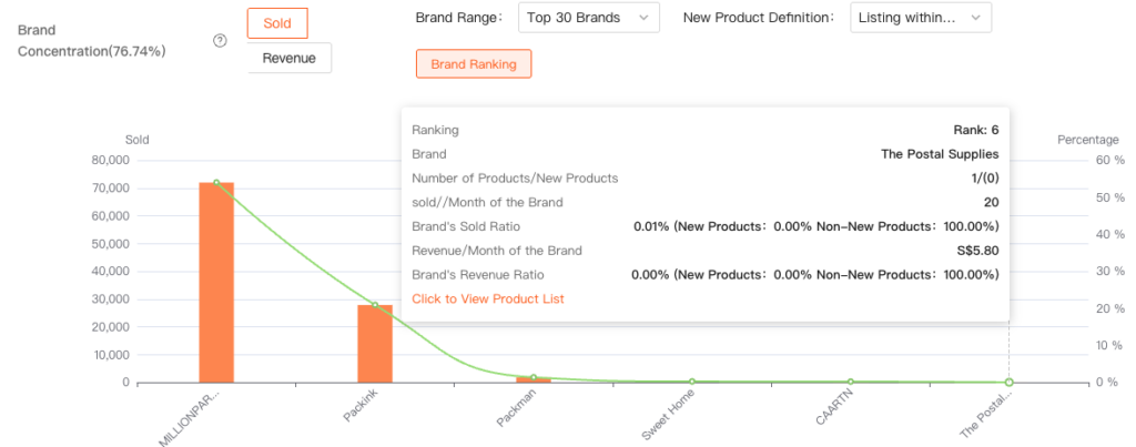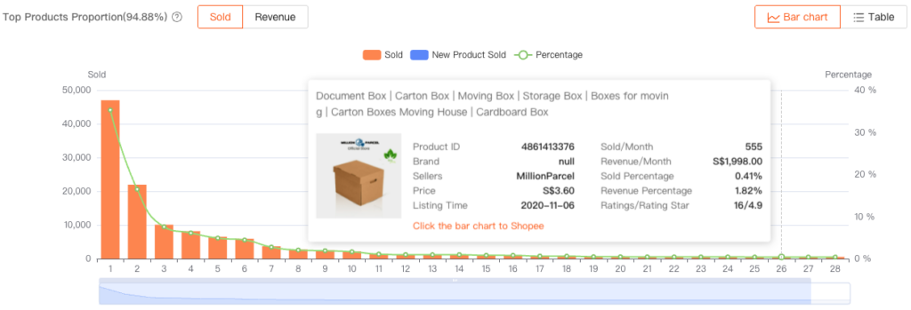 Clicking the bar chart reveals detailed information about the products included in these rankings.