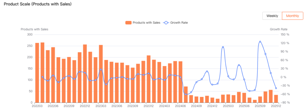 Conversely, when the proportion of new products shows an upward or stable trend, it may indicate structural opportunities within the market, suggesting that new entrants have a greater chance to acquire traffic and achieve growth.
