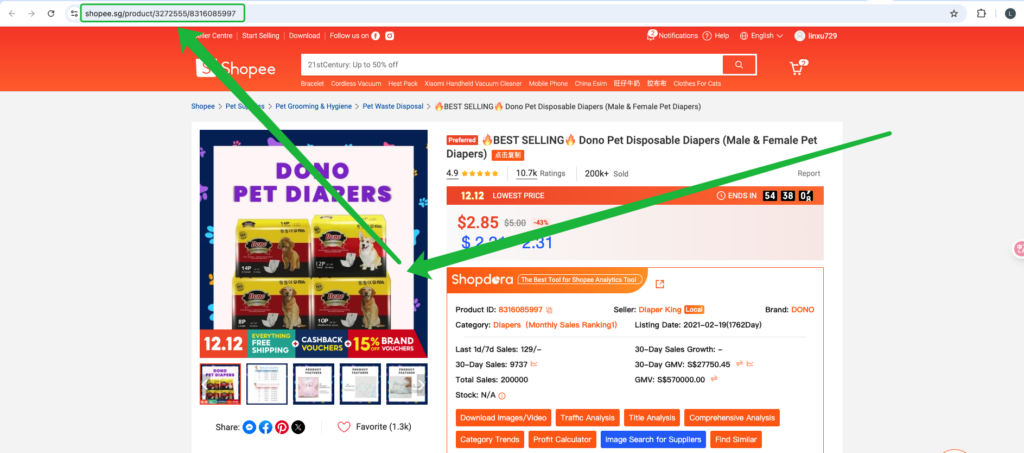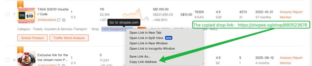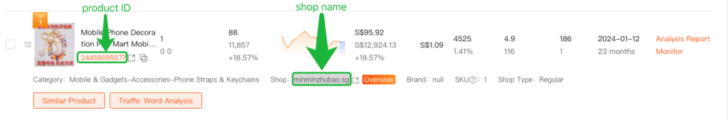 When using Shopdora’s Product Research, you can easily see the product ID and shop name.
