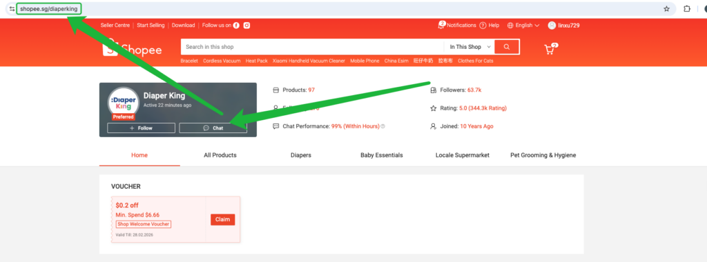 - Go to the seller’s shop page, then simply copy the URL shown in your browser’s address bar.
