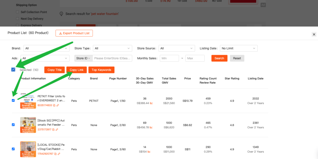 Once selected, click Copy Link to copy all chosen product URLs at once.