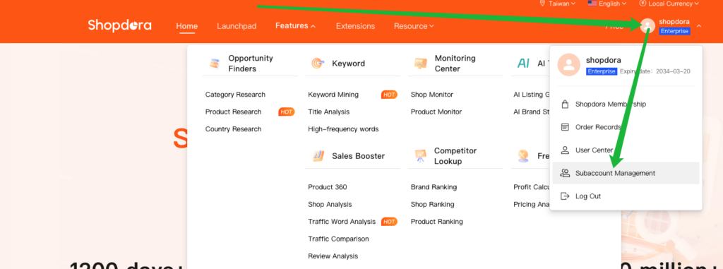 To facilitate multi-member collaboration for teams and enterprises, shopdora has implemented a Main and Sub-Account management system. This feature is designed to resolve the limitation of single-user logins, enabling team members to log in independently and collaborate efficiently while ensuring data security and proper access control.