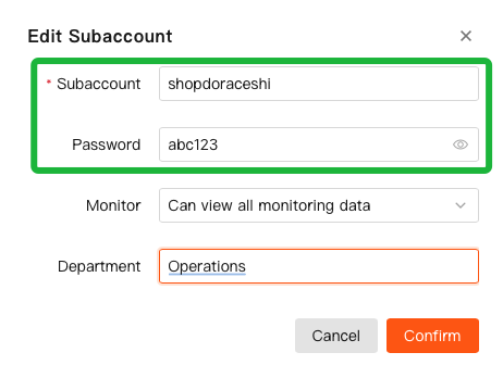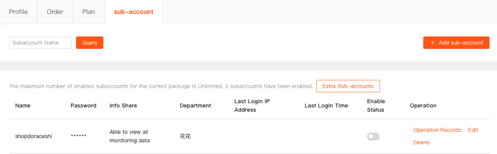 - Profile Management: Edit Sub-Account information and reset passwords. (Note: Sub-Account users cannot change their own passwords).