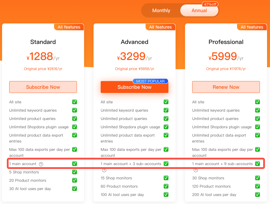 For example, if there were originally 9 sub-accounts and the downgraded plan only supports 3, the system will randomly keep 3 sub-accounts active, while the remaining 6 will be deactivated.