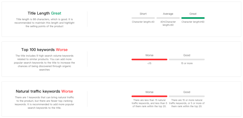 Deliver clear, practical recommendations for each dimension—enabling direct improvements to your product listing.