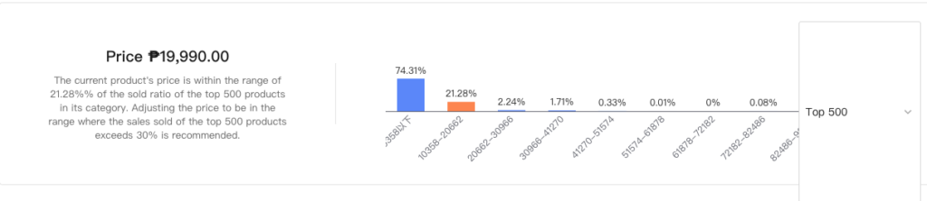 • Compare the product’s price against the price distribution of the top 500 bestsellers in the same category.