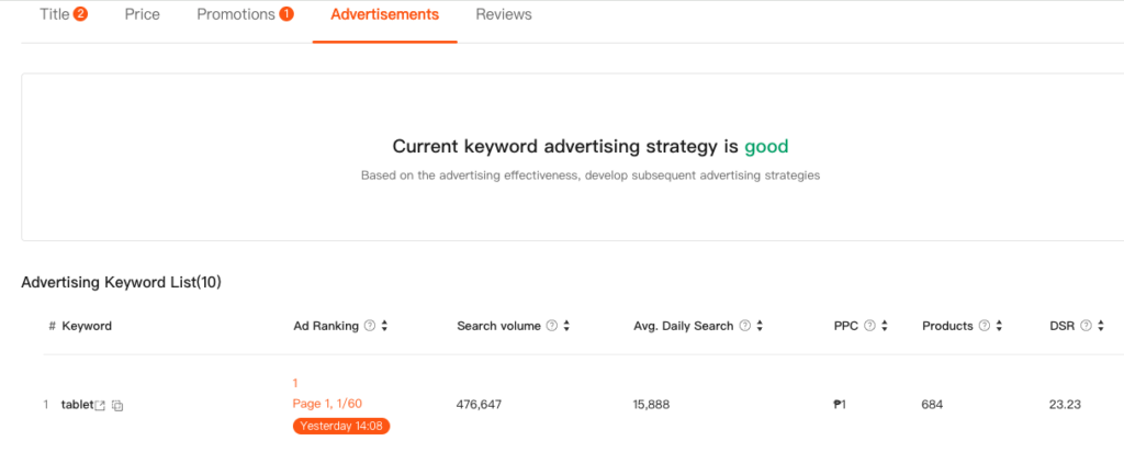 • If natural rankings perform well (at least 5 keywords ranked within Top 30) or if there are recent flash sale records, the current strategy can be maintained.