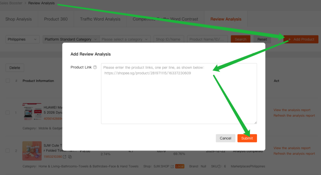 - Navigate to Sales Booster → Review Analysis.