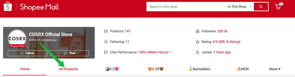 2. Shop detail page (Select All Products)