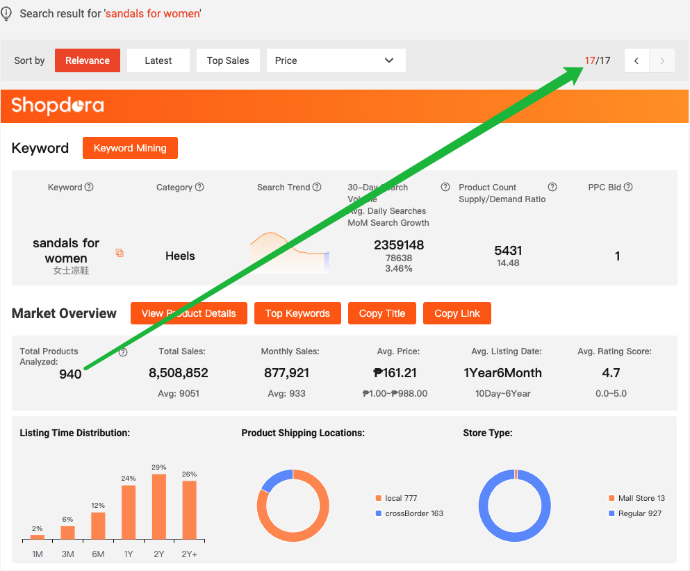 • You can view real-time market overview data for searched keywords and export product data for further analysis.