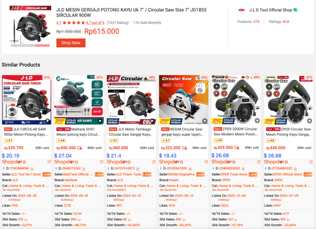 7. Find Similar Use Shopee’s image comparison feature to find competitors and gain insights into market competition landscape.