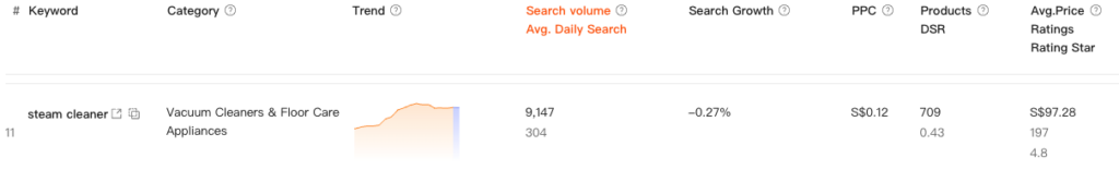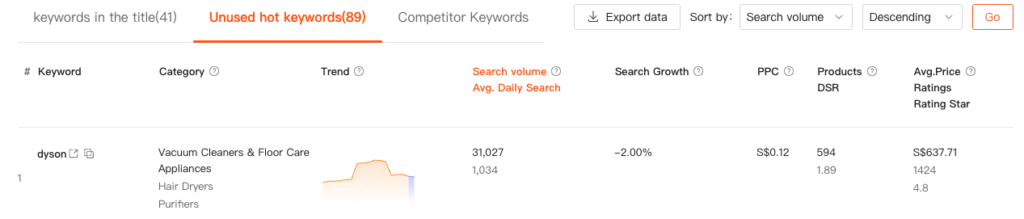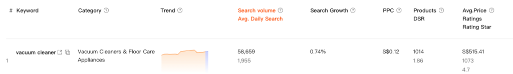 | Search Volume (Avg. Daily Search) | The number of times the keyword has been searched on Shopee in the last 30 days.(Average daily searches for this keyword) |