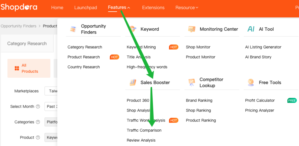 To understand how your product stacks up against competitors in terms of traffic keywords and ranking performance, use the Traffic Comparison feature.