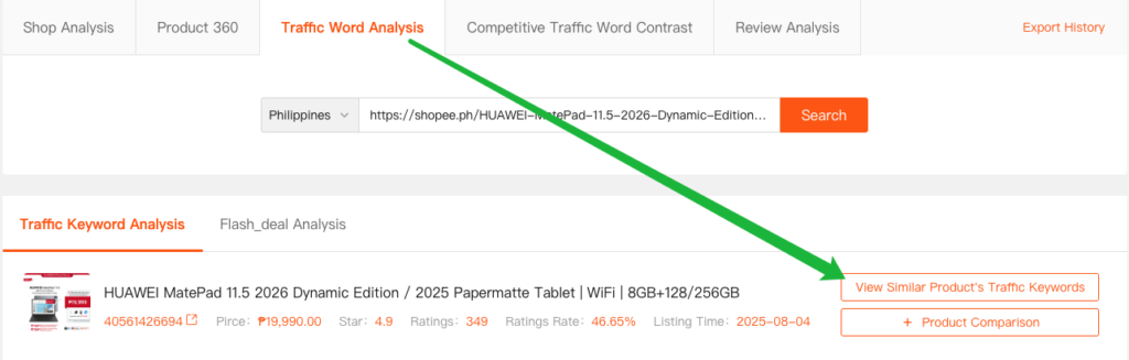 • Click [View Similar Product’s Traffic Keywords] to enter the Keyword Discovery page.
