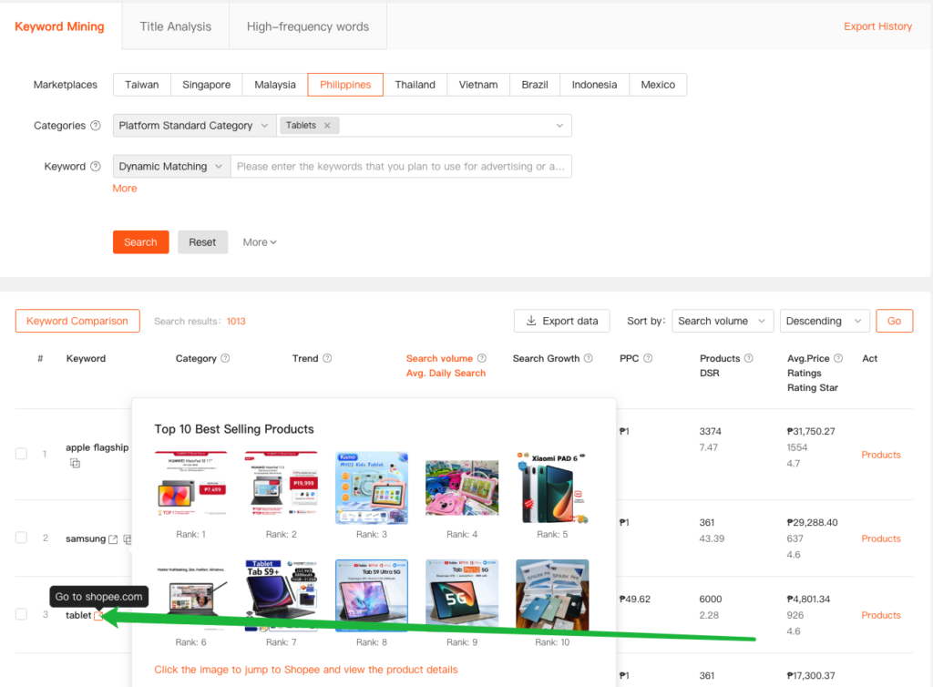 traffic keyword is the keyword with monthly search volume ≥ 1,000 that, when searched by users on Shopee’s front-end, returns your product listing in the results. If your listing appears for that search term, it is counted as a traffic keyword for your product.