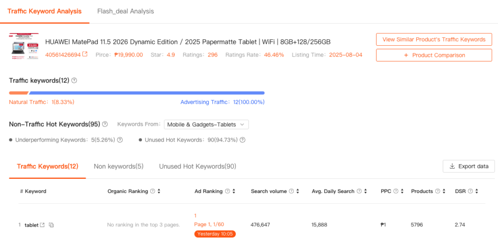 Identify Effective Traffic Keywords → Clearly distinguish between natural traffic keywords and advertising traffic keywords, so you know exactly which terms are driving real visibility.