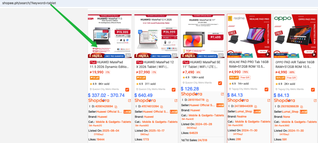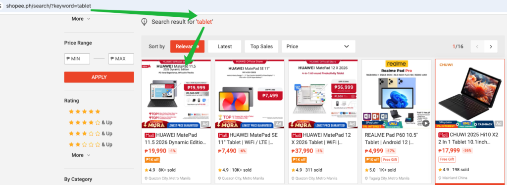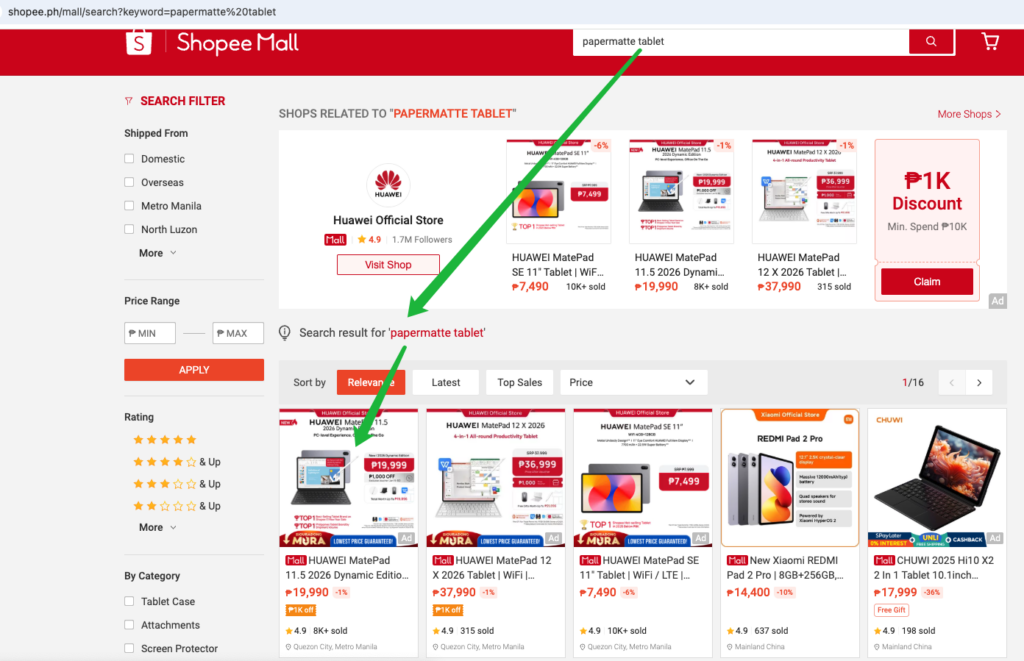 Example: If a user searches for “Papermatte Tablet” on Shopee and your product appears in the results, then “Papermatte Tablet” is a traffic keyword for that listing.