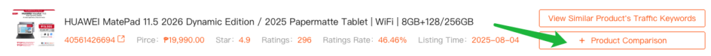 Uncover Competitor Keyword Strategies → Compare your product with competitors to identify their unique traffic-driving keywords, and quickly add high-performing terms to your own keyword library.