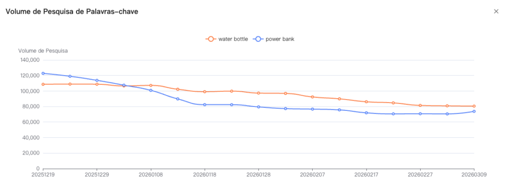 Exemplo: Se o volume de busca por garrafas de água ecológicas aumentar significativamente, pode indicar uma oportunidade de negócio potencial.