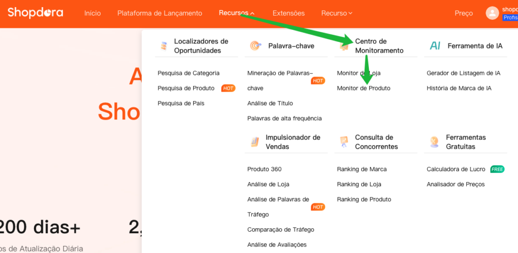 - Navegue até [Centro de Monitoramento] e selecione [Monitor de Produtos].