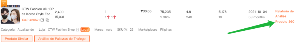- Informações Básicas: Vendas do produto, preço, avaliação e outros dados principais.